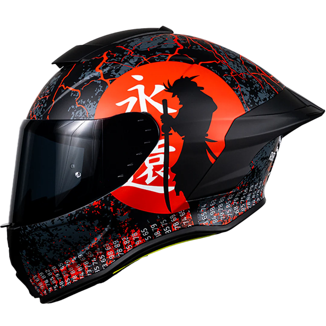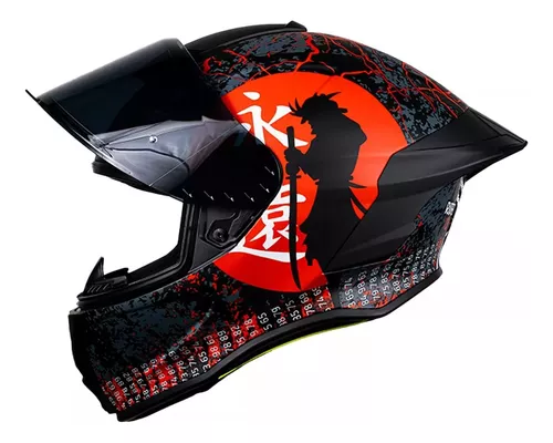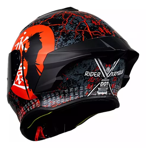 CASCO INTEGRAL CON DISEÑO SAMURAI CON LENTE INTERNO INCLUIDO, INCLUYE VISERA NIGHT VISION Y TRANSPARENTE